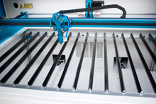 | 使激光束呈現“可見”狀態; | 調節工作平臺高度,通過控制面板控制; | 減少激光對材料底部反射; | 有效減少激光對材料底部反射; |